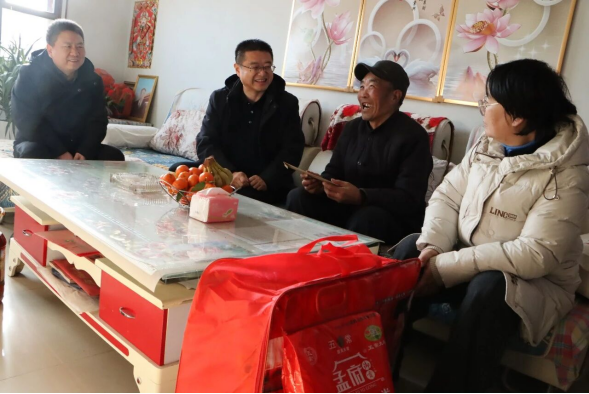 李德宏副會長一行還走訪慰問了高臺縣新壩鎮(zhèn)3戶困難群眾,每戶送去1000元的慈善救助金和1床棉被,給他們帶去了黨和政府以及社會各界愛心人士的溫暖和關(guān)懷。在困難群眾家中,李德宏與受助群眾面對面促膝交流,詳細(xì)了解他們家庭中的生產(chǎn)生活情況,鼓勵他們堅定信心,積極樂觀面對眼前困難,努力創(chuàng)造幸福美好生活。同時,叮囑鎮(zhèn)村干部及民政部門負(fù)責(zé)人,要時刻把困難群眾的冷暖放在心上,用心用情落實好各項民生保障政策,精準(zhǔn)對接群眾需求,切實為困難家庭排憂解難,全力做好特殊群體的關(guān)愛幫扶工作,確保他們度過一個歡樂、祥和、溫暖的新春佳節(jié)。